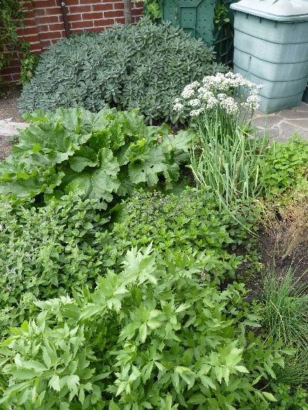 Gartenmelde und Malve (selbstsäend), Löwenzahn, Schwarzwurzel, Fetthenne, Giersch, Tellerkraut, Schildampfer, Blutampfer, Gemüseampfer, Rapunzel-Glockenblu, Mitsuba uvm. - Kräuter